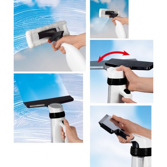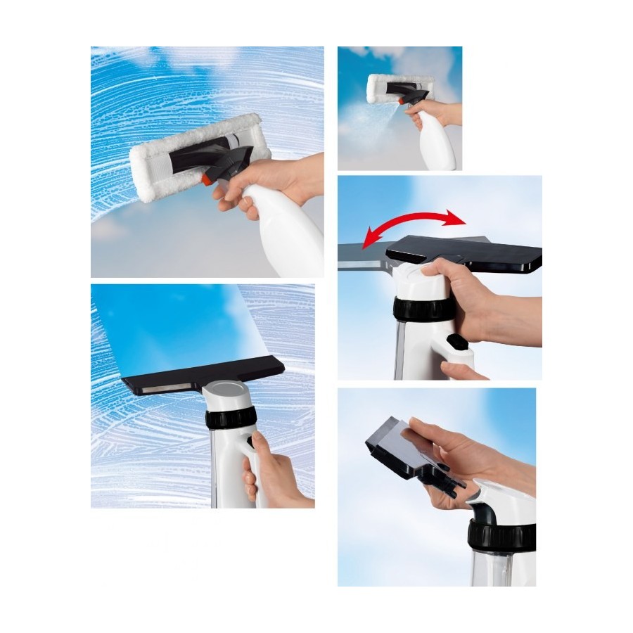 réglable & inclinable et rotation 360°. Il est aussi muni d'une rallonge pour accéder plus facilement au haut de la fenêtre.