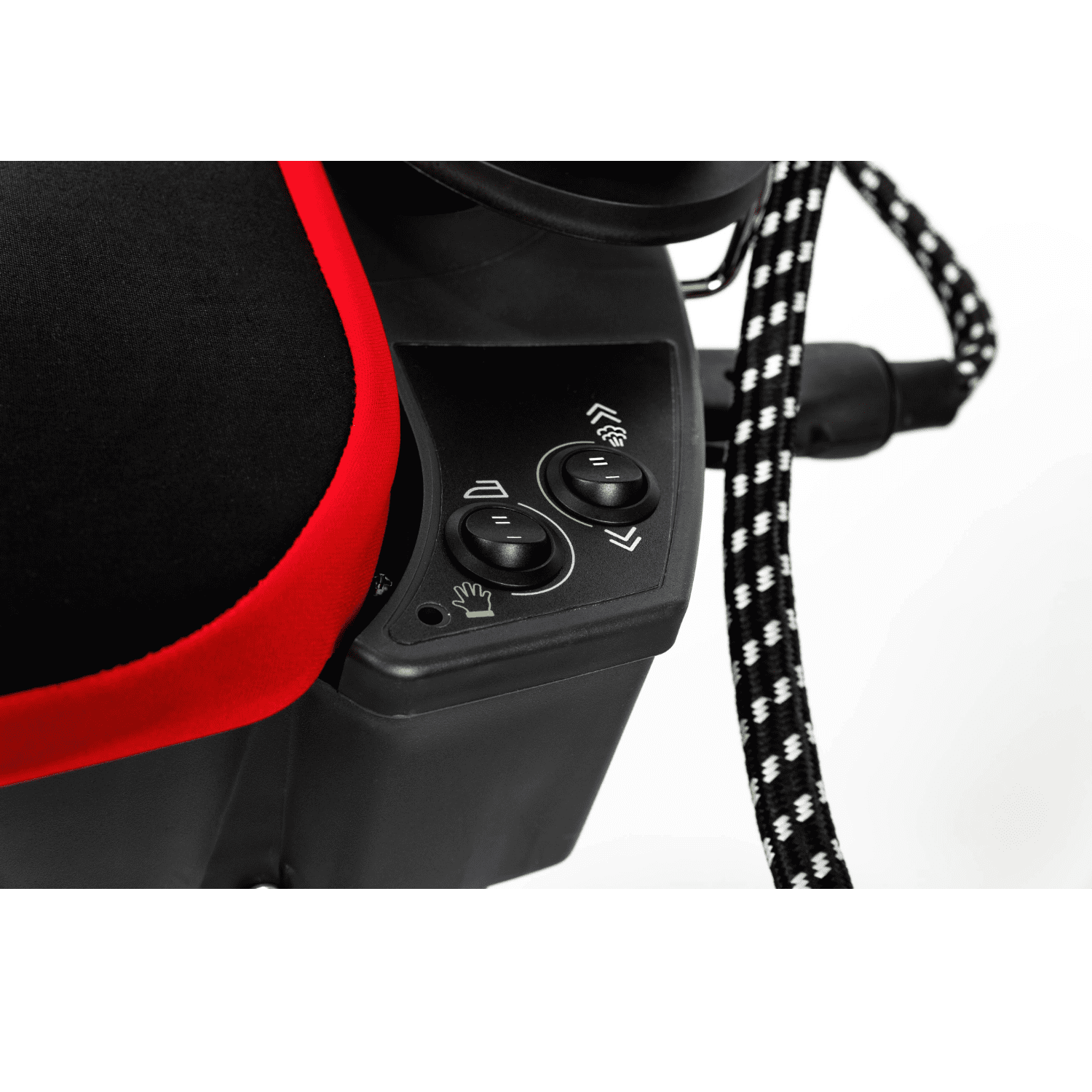 Très simple d’utilisation : 2 interrupteurs, un pour la double diffusion de vapeur et l’autre pour la soufflerie et l’aspiration. Sur la position II, il souffle, sur la position I, il aspire.