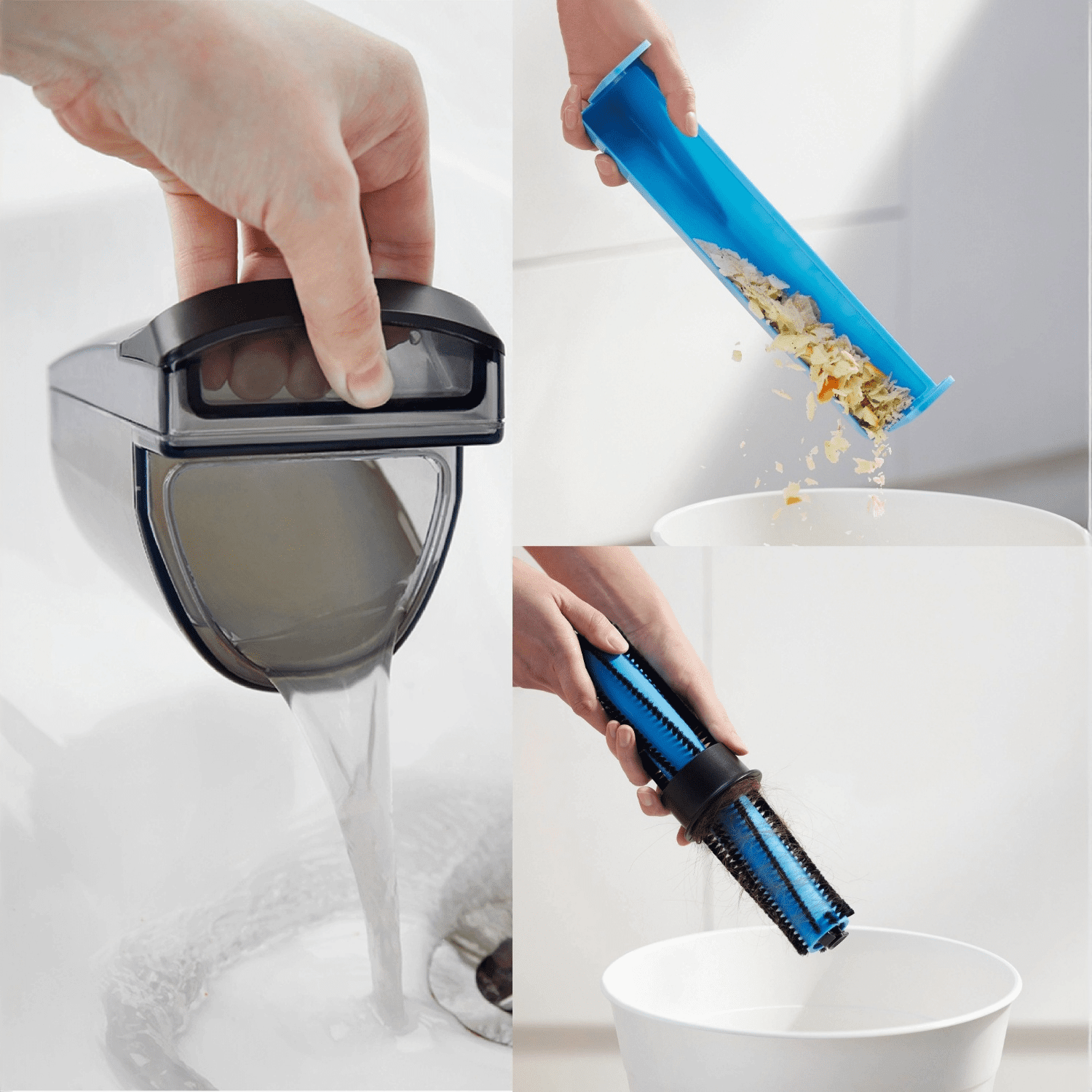 Le nettoyeur de sol F500 sépare les déchets solides de l’eau sale simplifiant ainsi la gestion des déchets. Il est plus simple de jeter les résidus contenus dans le bac à déchets bleu et de vider l’eau sale.