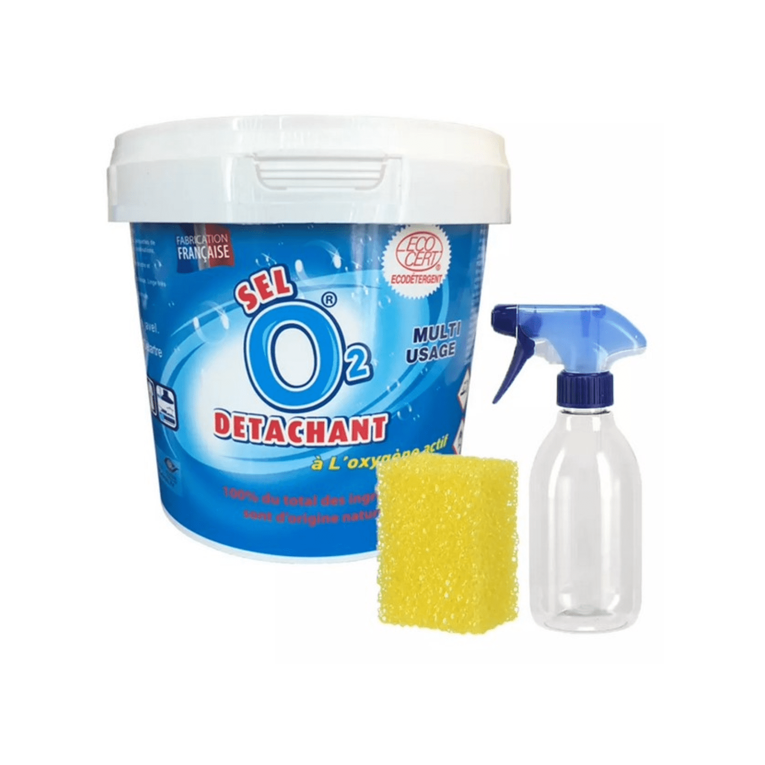 Vous pourrez utiliser le sel dètachant en spray pour les taches localisèes ou en poudre pour le lavage é main et le lavage en machine.
